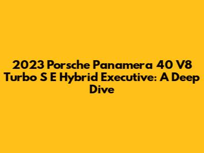 Hey guys! Today, we’re diving deep into the 2023 Porsche Panamera 40 V8 Turbo S E Hybrid Executive. Buckle up because this isn't just another car; it's a symphony of power, luxury, and cutting-edge technology all rolled into one sleek package. We're talking serious performance combined with eco-friendly credentials and enough comfort to make every journey feel like a first-class experience. So, let’s get started and explore what makes this Panamera so special.