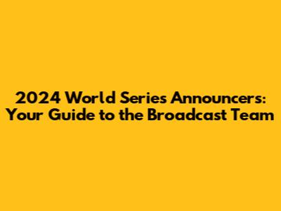 The 2024 World Series is poised to be an unforgettable event, both on and off the field. With a top-tier broadcast team, state-of-the-art technology, and a wealth of pre-game, in-game, and post-game coverage, the networks are preparing to give us the best viewing experience possible. Itâs hard to know exactly who will be in the booth, but it's safe to say that the broadcasters will have a combination of experience and insight. By understanding the potential announcers, the broadcast styles, and the impact of technology, we can enhance our enjoyment of the game, appreciating the talent and effort that goes into making the World Series a must-see event. So, keep an eye on the official announcements, get ready for the first pitch, and prepare for a series of unforgettable moments. Let's look forward to a fantastic 2024 World Series! We're all in for some exciting games, insightful commentary, and a lot of memorable moments.