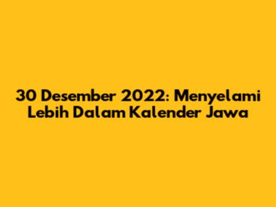 Guys, let's dive into something fascinating: the Kalender Jawa (Javanese Calendar)! Specifically, let's explore tanggal 30 Desember 2022 in this ancient system. This calendar isn't just about dates; it's a rich tapestry woven with history, culture, and spiritual significance. Understanding this calendar gives you a unique glimpse into the Javanese worldview, their values, and how they perceive time and events. It's like unlocking a secret code to understanding their traditions and beliefs. So, grab your coffee, and let's unravel the mysteries of the Javanese calendar, specifically focusing on the date of December 30th, 2022.