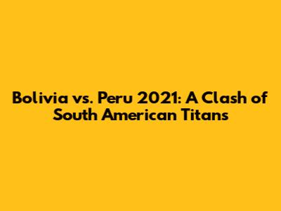 Bolivia Vs. Peru 2021: A Clash Of South American Titans