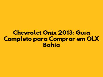 Chevrolet Onix 2013: Guia Completo Para Comprar Em OLX Bahia