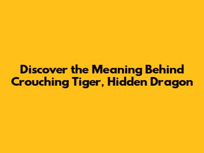 Discover the Meaning Behind "Crouching Tiger, Hidden Dragon"