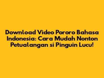 Halo, guys! Siapa sih yang nggak kenal sama Pororo? Si pinguin kecil yang super imut dan teman-temannya ini memang selalu berhasil mencuri hati anak-anak, bahkan orang dewasa sekalipun. Dari mulai Crong si dinosaurus kecil, Eddy si rubah jenius, Loopy si beruang pemalu, sampai Poby si beruang besar yang baik hati, semua karakter Pororo punya pesonanya sendiri. Nah, buat kalian para orang tua yang lagi cari cara biar si kecil bisa nonton serial Pororo favoritnya dalam Bahasa Indonesia, kalian datang ke tempat yang tepat! Artikel ini bakal ngebahas tuntas gimana caranya download video Pororo Bahasa Indonesia dengan gampang dan pastinya aman. Siap-siap ya, petualangan seru Pororo siap menemani hari-hari si kecil!