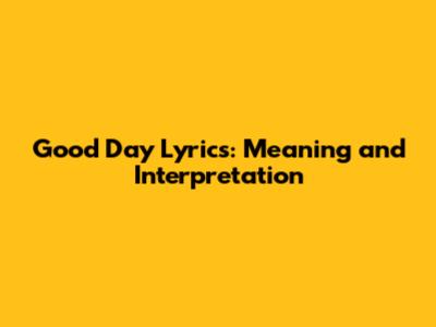 Let's dive deep into the analysis of "Good Day Lyrics". The song "Good Day" is more than just a catchy tune; it’s a carefully constructed narrative that resonates with listeners on multiple levels. Understanding the lyrics involves exploring the themes, metaphors, and emotions embedded within each verse. The song often speaks of optimism, resilience, and finding joy even in the face of adversity. The beauty of analyzing song lyrics lies in the subjective interpretation each listener brings, but certain core themes tend to stand out with careful examination. We can delve into the background of the artist, the context in which the song was written, and the lyrical devices used to convey its message. Whether it's the use of vivid imagery, clever wordplay, or heartfelt confessions, the lyrics of "Good Day" offer a rich tapestry of meaning for those willing to explore it.
