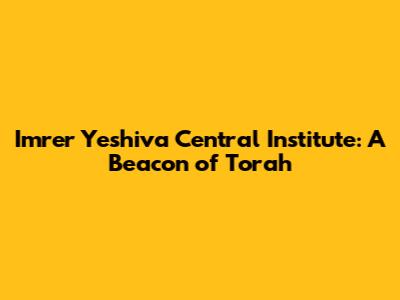 Imrer Yeshiva Central Institute: A Beacon Of Torah