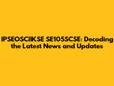 IPSEOSCIIKSE SE105SCSE: Latest News, Updates, And Insights