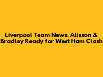 Liverpool Team News: Alisson & Bradley Ready For West Ham Clash