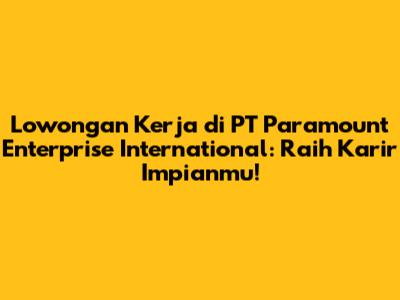 Sedang mencari lowongan kerja terbaru? Atau kamu sedang mencari kesempatan untuk mengembangkan karir di perusahaan yang bonafide dan terus berkembang? Jika iya, maka kamu berada di tempat yang tepat! Artikel ini akan membahas secara mendalam tentang lowongan kerja di PT Paramount Enterprise International, sebuah perusahaan yang bergerak di berbagai bidang industri dan dikenal dengan reputasinya yang baik.