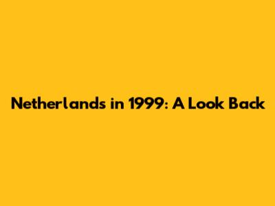 Netherlands In 1999: A Look Back