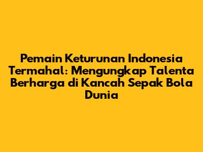 Pemain keturunan Indonesia selalu menjadi topik menarik dalam dunia sepak bola, terutama ketika berbicara tentang nilai transfer mereka. Artikel ini akan membahas tentang para pemain keturunan Indonesia termahal di dunia, menganalisis kontribusi mereka di lapangan, dan melihat bagaimana mereka berkontribusi pada perkembangan sepak bola Indonesia. Mari kita telusuri lebih dalam mengenai talenta-talenta berharga ini dan bagaimana mereka mengukir jejak mereka di dunia sepak bola.
